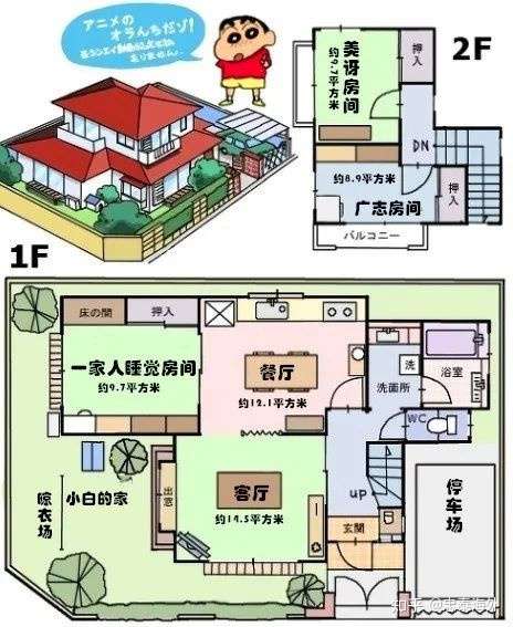 首先,我们先来看被网友号称日本卡通界的富豪——蜡笔小新。众所皆知小新的爸爸是一名课长(年薪600万日元、并且背负32年贷款),但这都不影响妻子美伢逛街血拼、一家出国旅行。小新家位于东京近郊埼玉县,是一户建形式,看整体的建筑不难看出小新家的优渥。